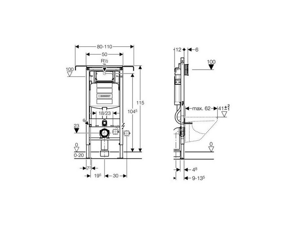 - Pro zabudování do předstěnové instalace na částečnou nebo celou výšku místnosti před masivní stěnou nebo stěnou prováděnou suchým procesem