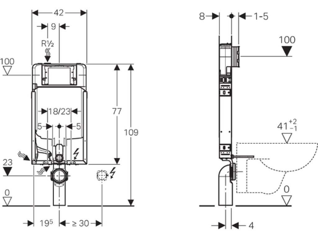 - Pro montáž závěsného WC se vzdáleností upevnění 18 cm nebo 23 cm