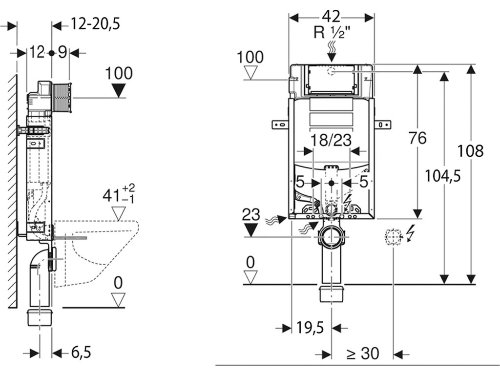 Soubory ke stažení:Geberit Kombifix montážní prvek pro závěsné WC, 108 cm, se splachovací nádržkou pod omítku Sigma 12 cm, pro externí odsávání zápachu s odvodem vzduchu.