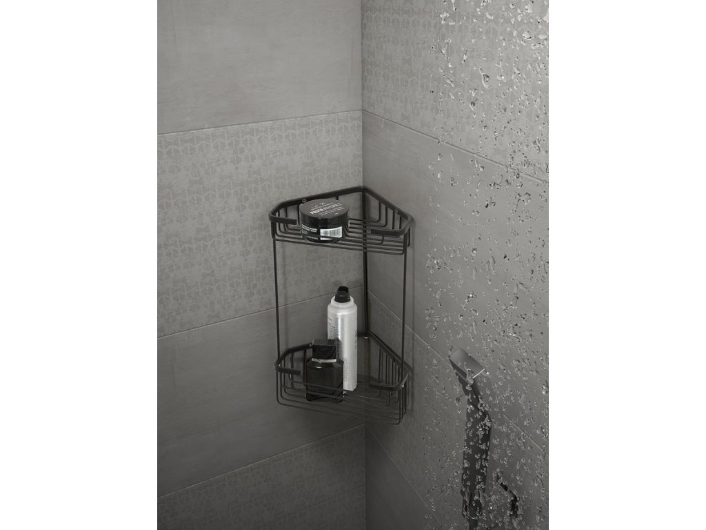 Gedy SMART dvoupatrová rohová police 200x325x151mm, černá mat 2482-14