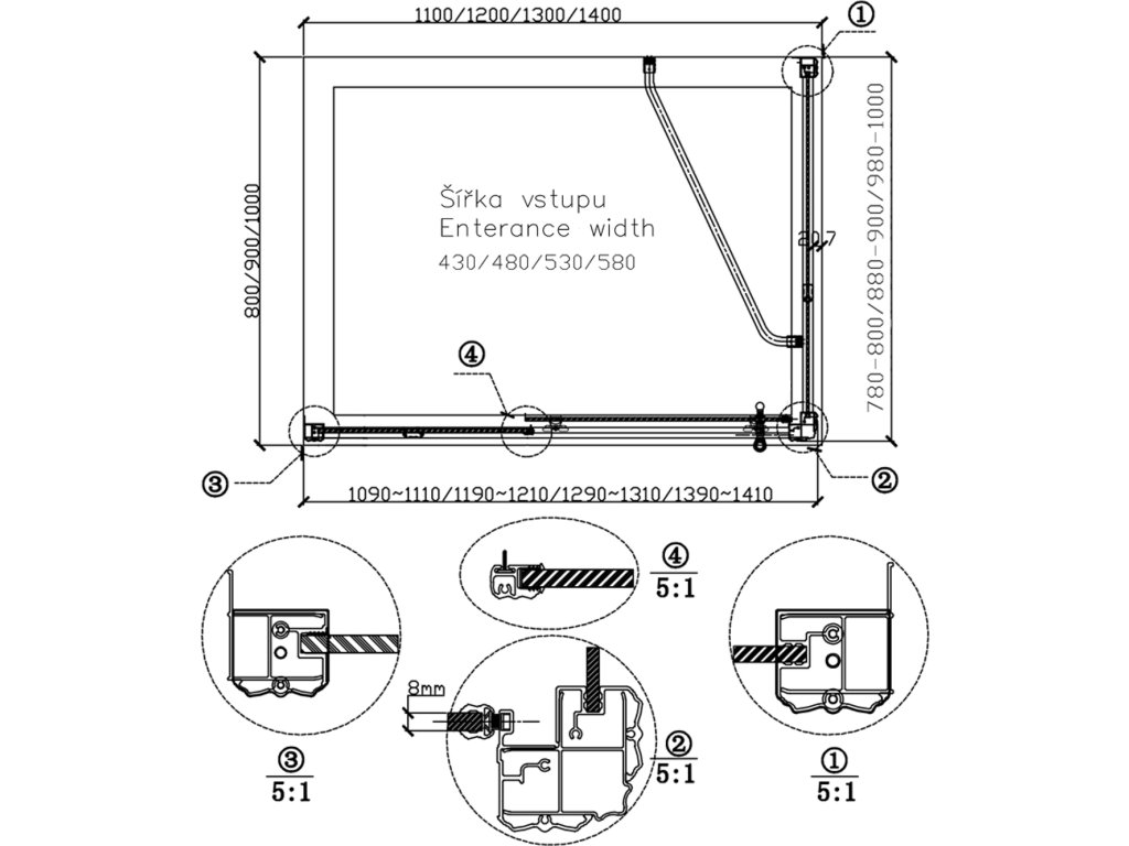 Tvar: | Pevná stěna ke sprchovým dveřím |