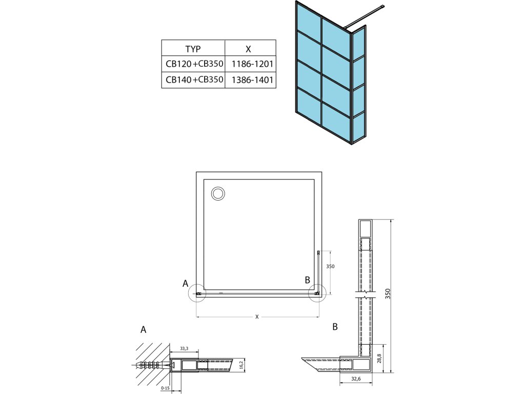 - Zástěny v šířkách 700 až 1400 mm