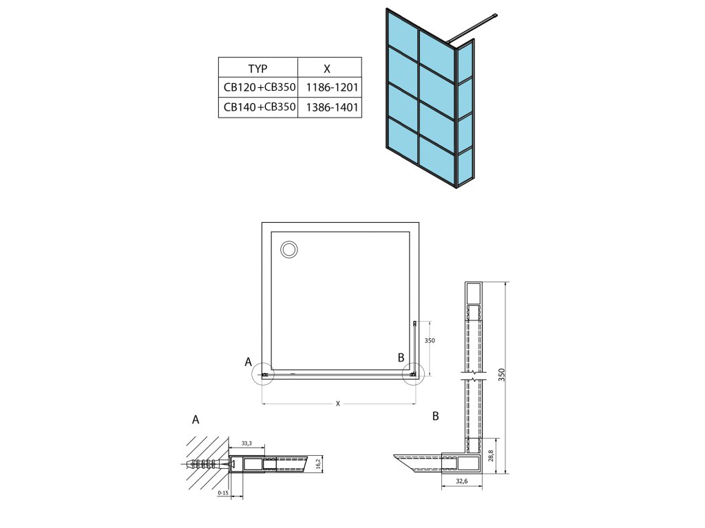 - Zástěny v šířkách 700 až 1400 mm