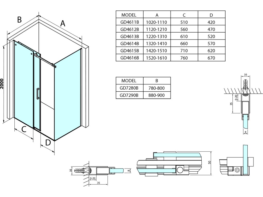 - Pro vyšší stabilitu doporučujeme instalovat zástěnu se vzpěrou GDV300/GDV300B