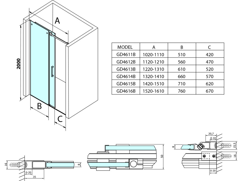 - Pro vyšší stabilitu doporučujeme instalovat zástěnu se vzpěrou GDV300/GDV300B