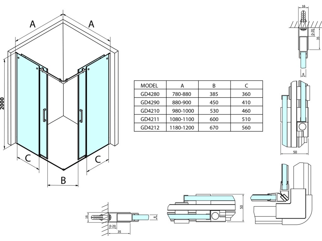 Gelco DRAGON čtvercový sprchový kout 1200x1200mm, rohový vstup GD4212GD4212