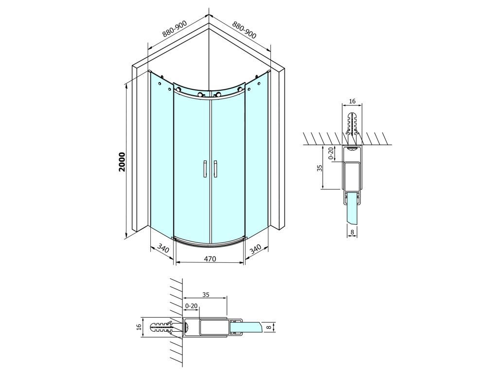 Tvar: | Čtvrtkruhové zástěny |