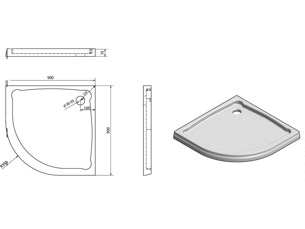 Gelco HERA sprchová vanička z litého mramoru, čtvrtkruh, 90x90x7, 5cm, R550, bílá GH559
