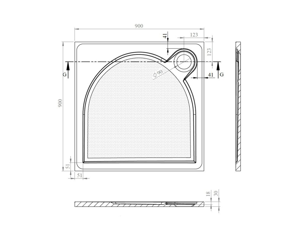 Gelco LARCA sprchová vanička z litého mramoru, čtverec 90x90cm, bílá PL009