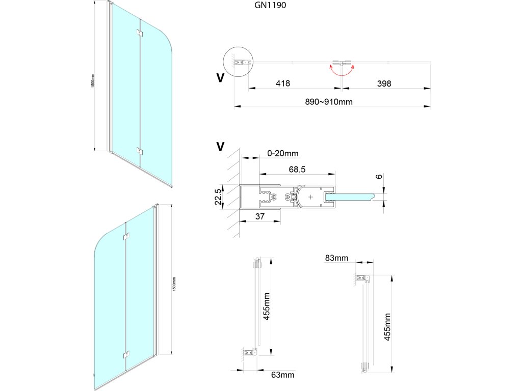 Gelco LORO vanová zástěna skládací 900mm, čiré sklo GN1190