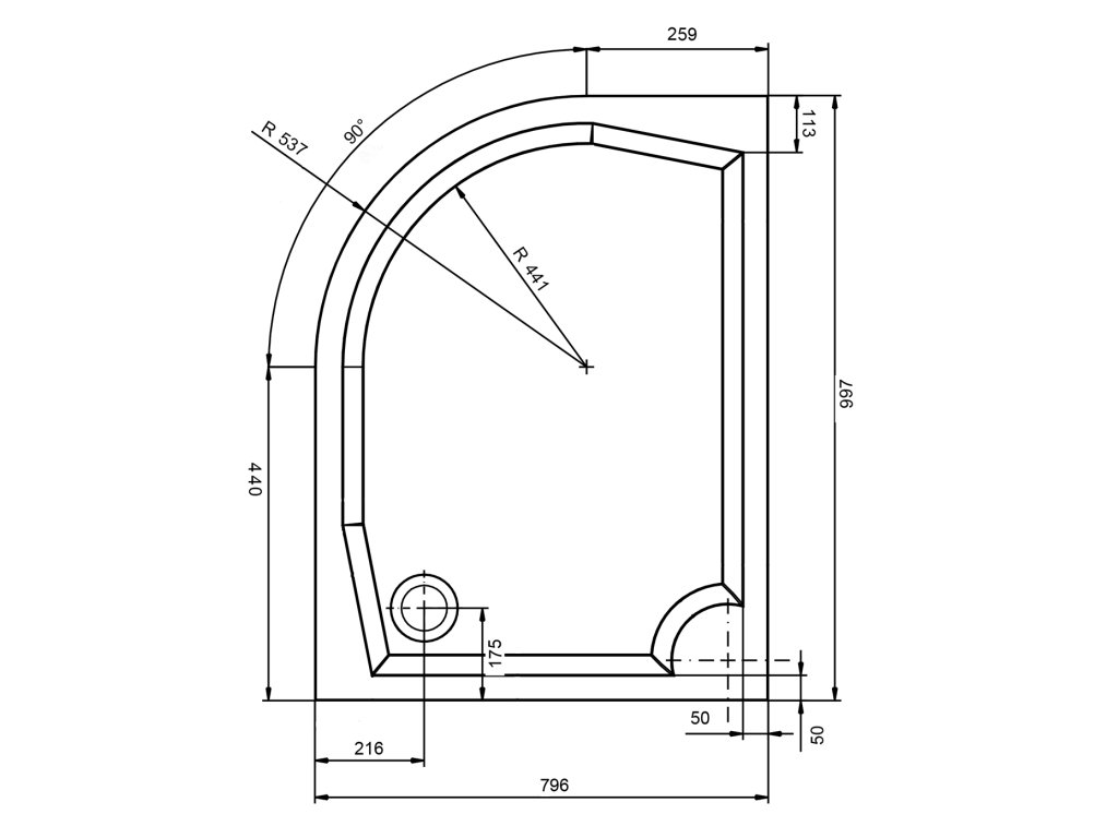 Gelco RIVA sprchová vanička z litého mramoru, čtvrtkruh 100x80cm, pravá, bílá GR10080R