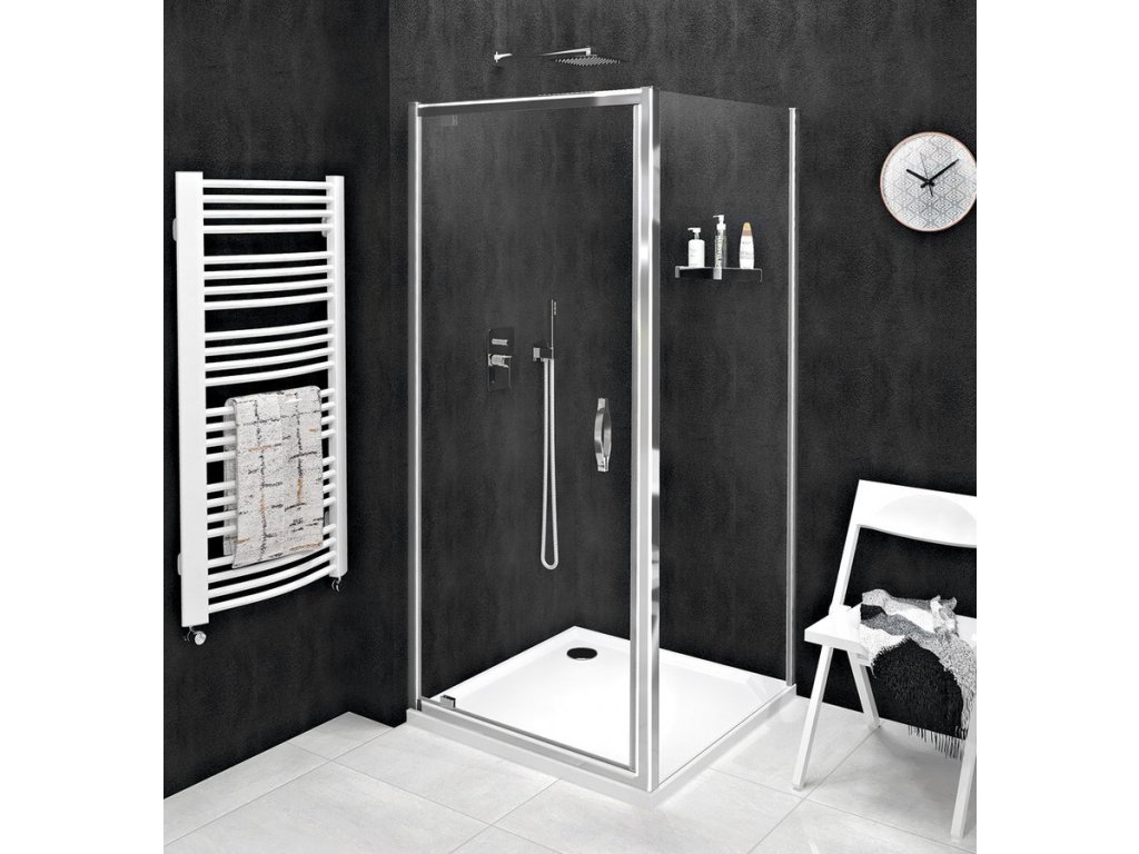 - Kombinací boční stěny a dveří získáte obdélníkovou/čtvercovou zástěnu - na výběr dveře posuvné a pivotové