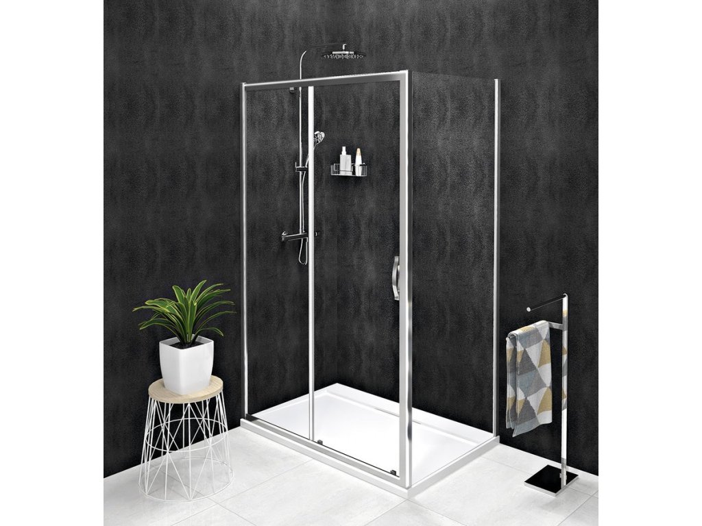 - Kombinací boční stěny a dveří získáte obdélníkovou/čtvercovou zástěnu - na výběr dveře posuvné a pivotové