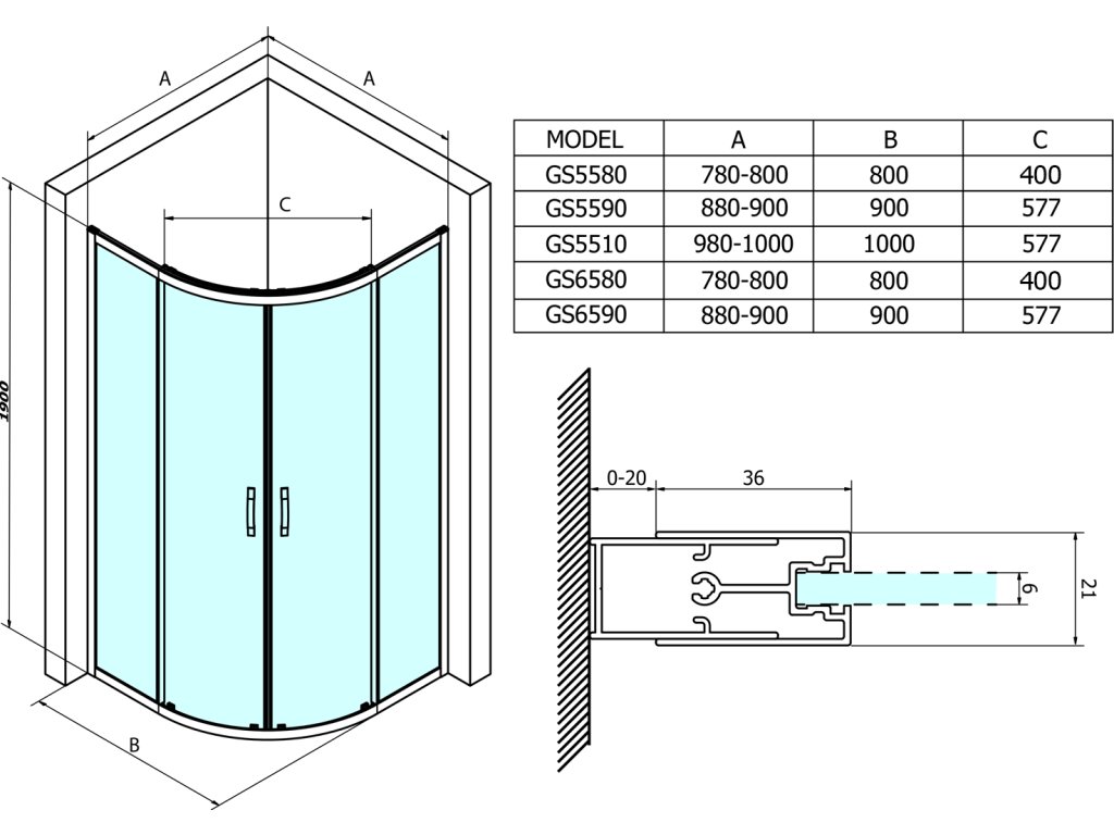 - Čtvrtkruhové zástěny a čtvrtkruhové zástěny s prodlouženou stěnou s posuvnými dveřmi