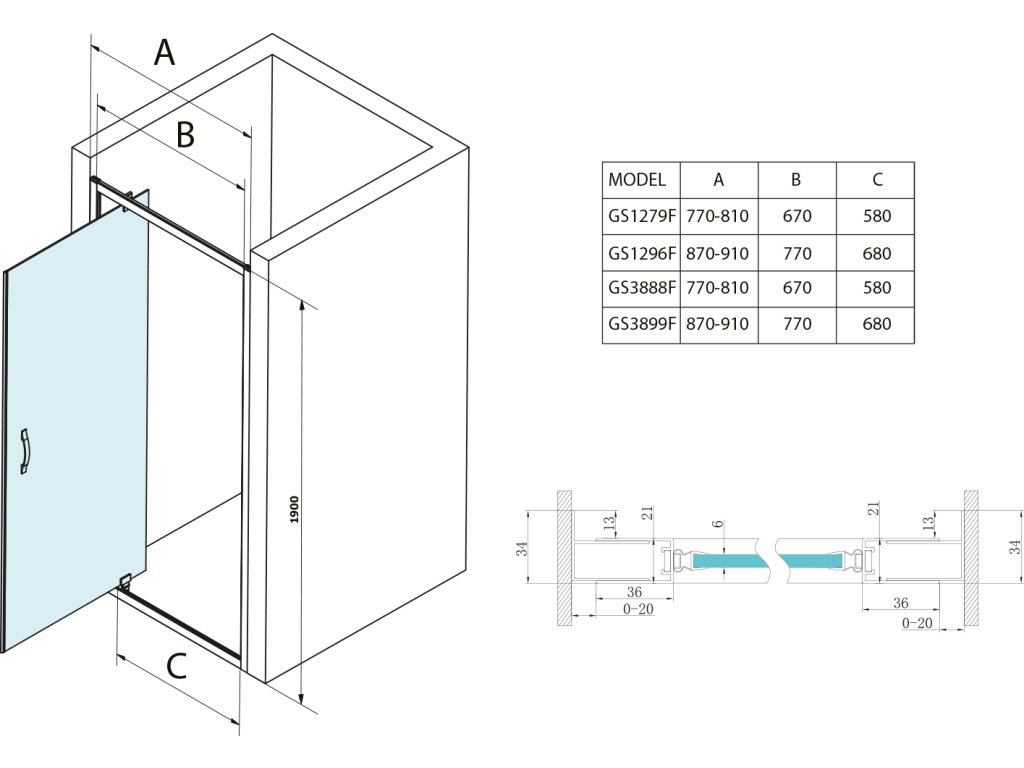 - Kombinací boční stěny a dveří získáte obdélníkovou/čtvercovou zástěnu - na výběr dveře posuvné a pivotové
