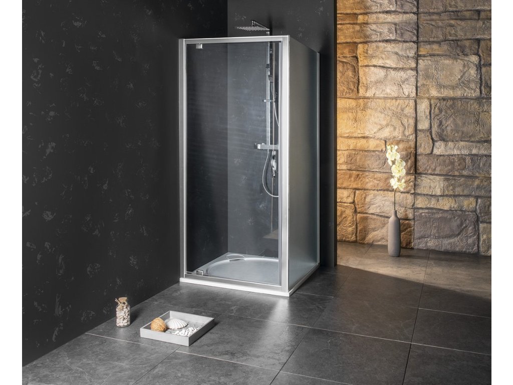 - Kombinací boční stěny a dveří získáte obdélníkovou/čtvercovou zástěnu - na výběr dveře posuvné a pivotové