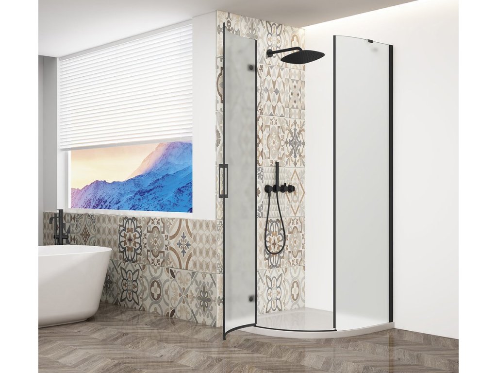 Gelco TRINITY BLACK čtvrtkruhový sprchový kout 900x900mm, matné sklo, levé GT6590ML-B