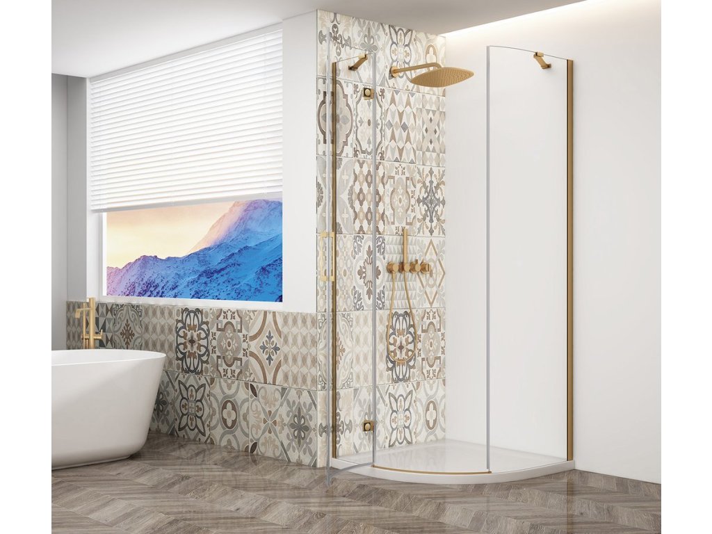 Gelco TRINITY GOLD MATT čtvrtkruhový sprchový kout 900x900mm, čiré sklo, levé GT6590CL-G