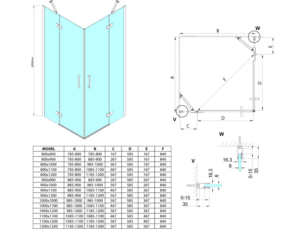 Čtvercová/obdélníková zástěna s rohovým vstupem