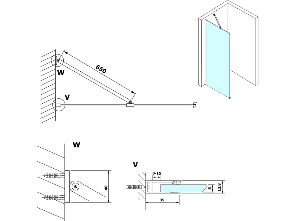 - Stěnové profily s tolerancí 15 mm usnadňují stabilní montáž zástěn, instalace je možná na dlažbu nebo sprchovou vaničku