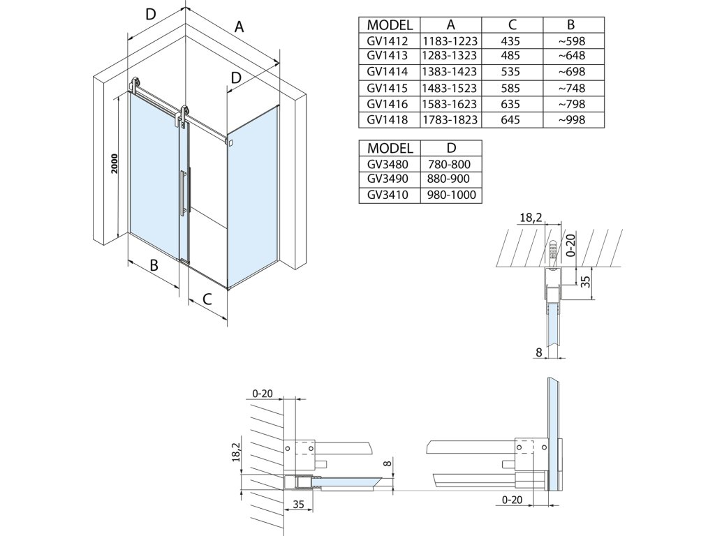 - Při výrobě dveří je použito bezpečnostní sklo o síle 8 mm s oboustrannou povrchovou úpravou COATED GLASS pro snadnou údržbu