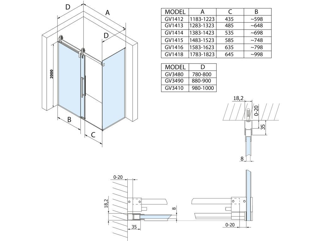 - Při výrobě dveří je použito bezpečnostní sklo o síle 8 mm s oboustrannou povrchovou úpravou COATED GLASS pro snadnou údržbu