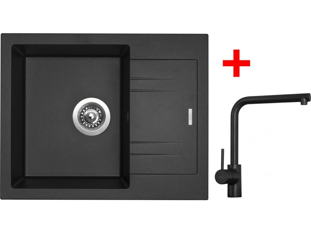 Granitový dřez Sinks LINEA 600 Metalblack + Elka černá matná G1974