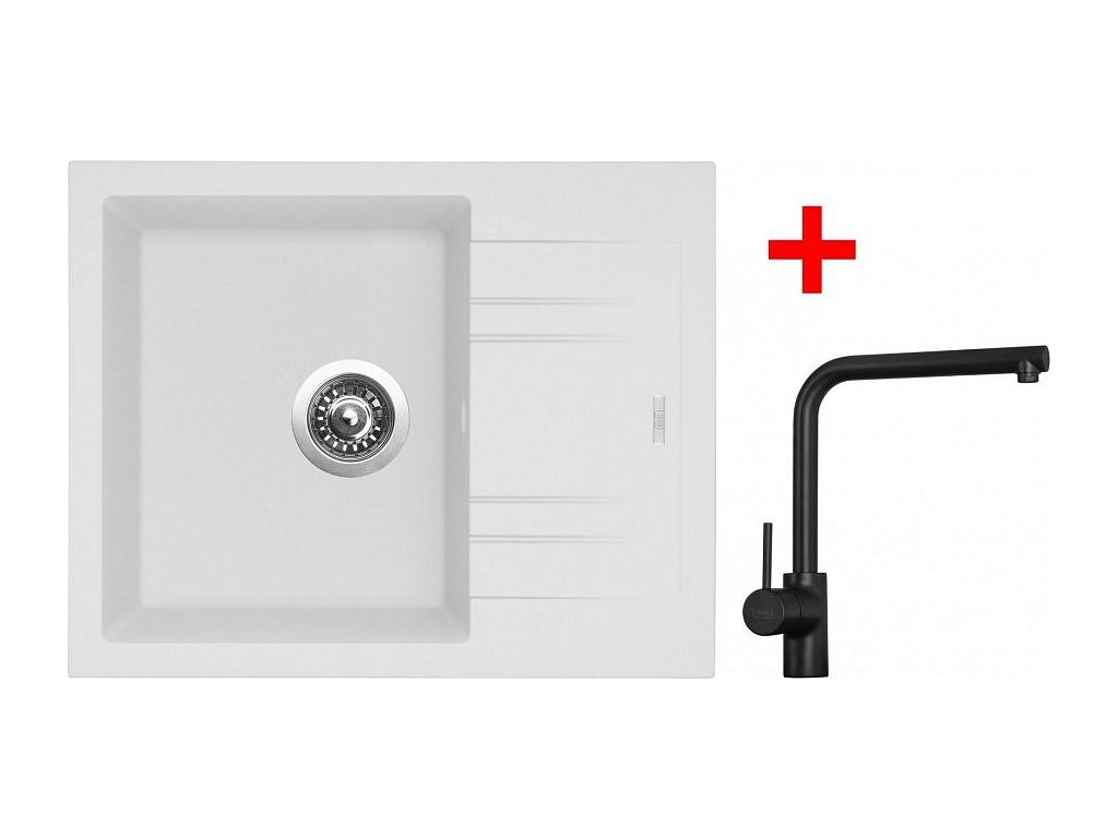 Granitový dřez Sinks LINEA 600 Milk + Elka černá matná G1928