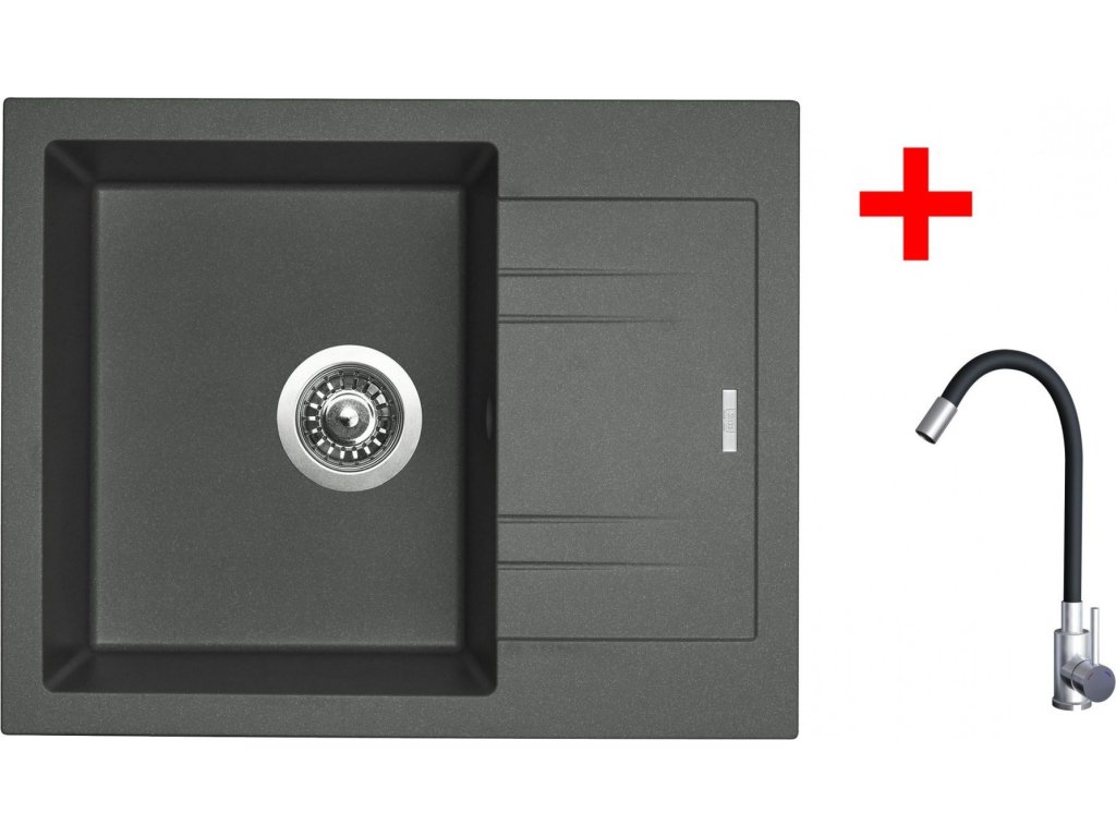 Granitový dřez Sinks LINEA 600 Titanium + Elasta nerez/černá G20372