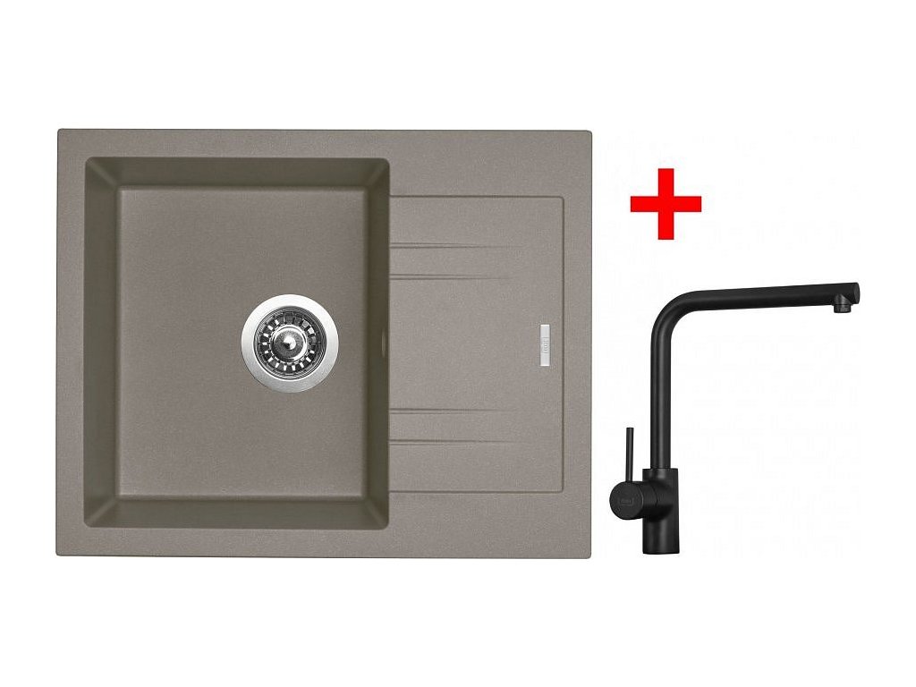 Granitový dřez Sinks LINEA 600 Truffle + Elka černá matná G1954