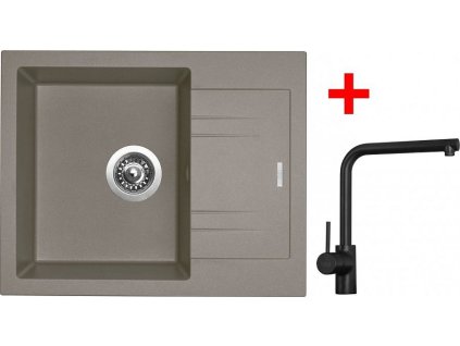 Granitový dřez Sinks LINEA 600 Truffle + Elka černá matná G1954