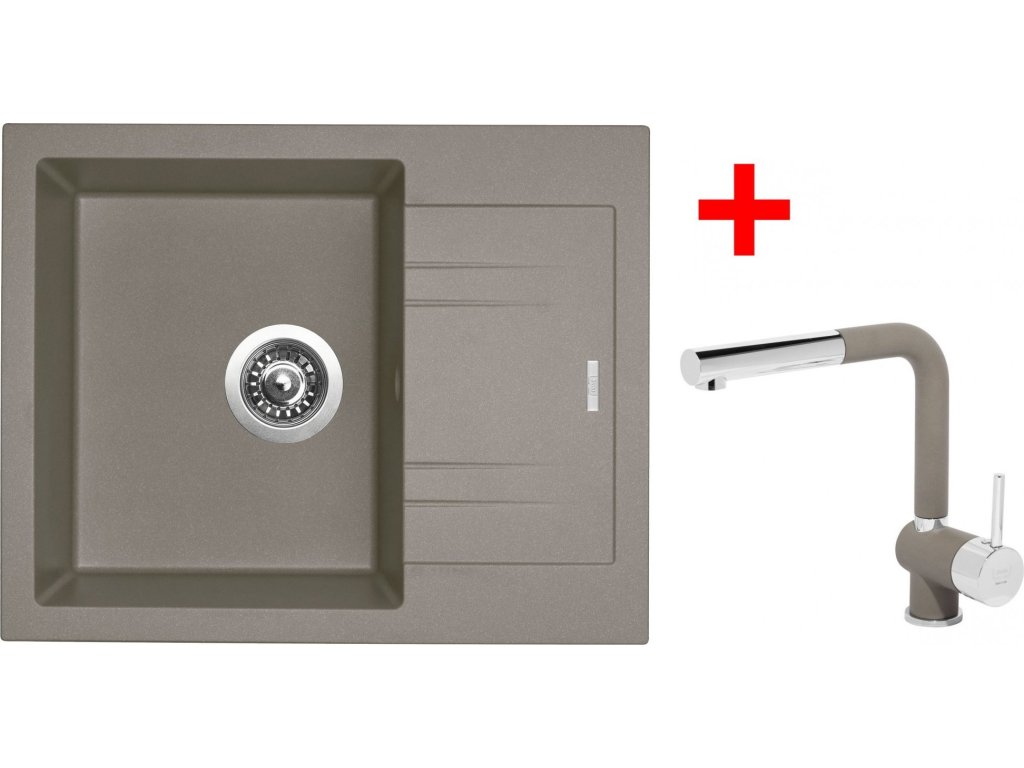 Granitový dřez Sinks LINEA 600 Truffle + Elka černá matná G1954
