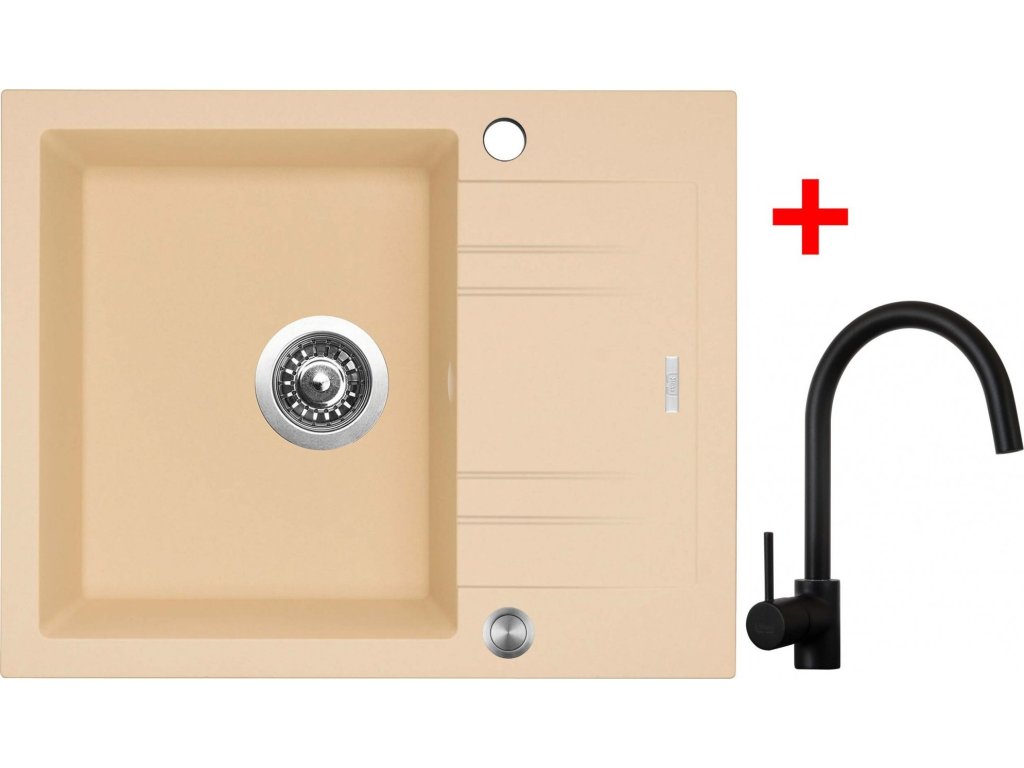 Granitový dřez Sinks LINEA 600 XC Sahara + Vitalia černá matná G1550XC