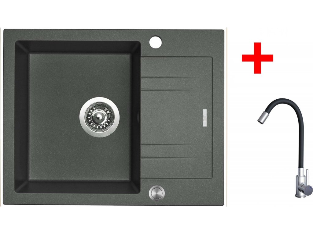 Granitový dřez Sinks LINEA 600 XC Titanium + Elasta nerez/černá G20372XC