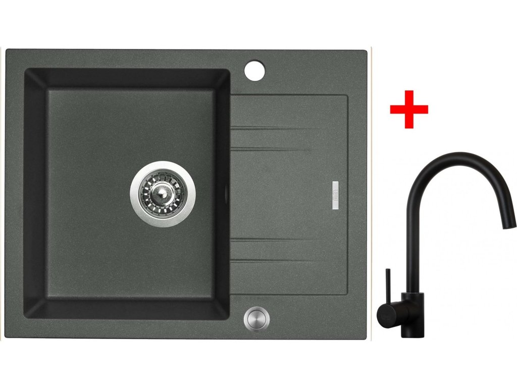 Granitový dřez Sinks LINEA 600 XC Titanium + Vitalia černá matná G1572XC