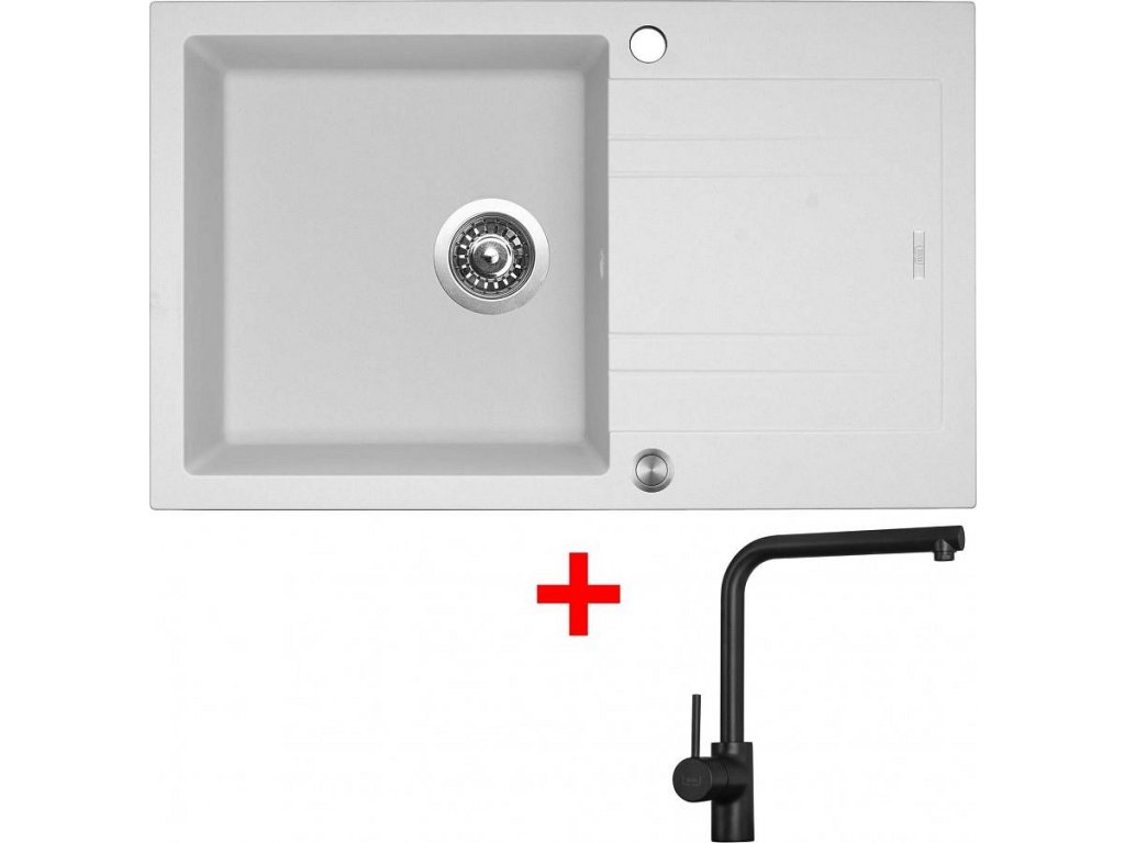 Granitový dřez Sinks LINEA 780 XC Milk + Elka černá matná G4728XC