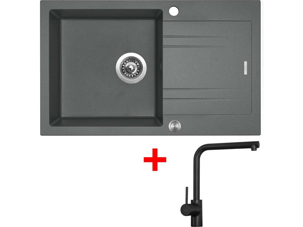 Granitový dřez Sinks LINEA 780 XC Titanium + Elka černá matná G4772XC