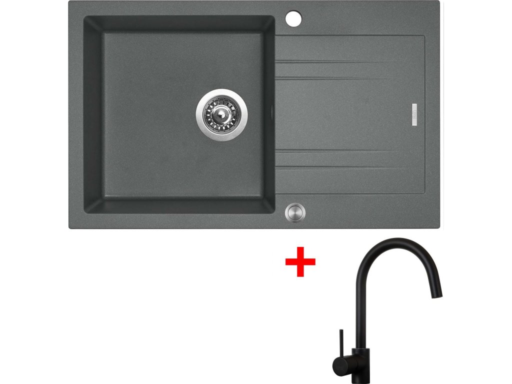 Granitový dřez Sinks LINEA 780 XC Titanium + Vitalia černá matná G4372XC