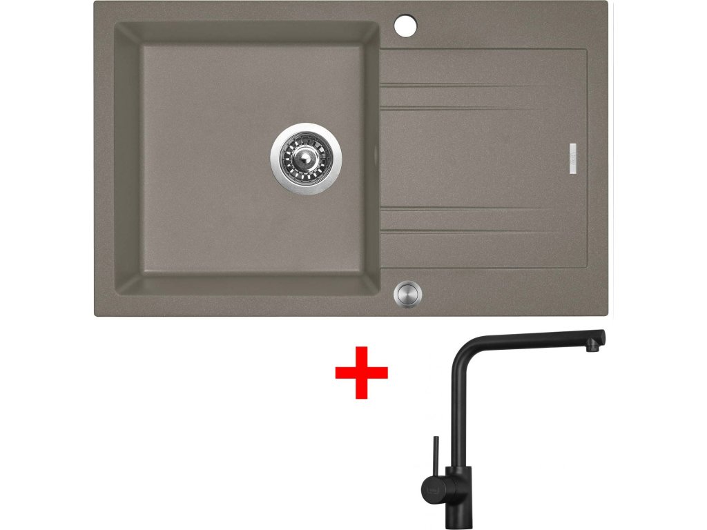 Granitový dřez Sinks LINEA 780 XC Truffle + Elka černá matná G4754XC
