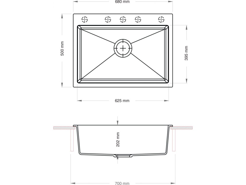 Granitový dřez Sinks MAXIMO 680 Pureblack + Elasta nerez/černá G21626