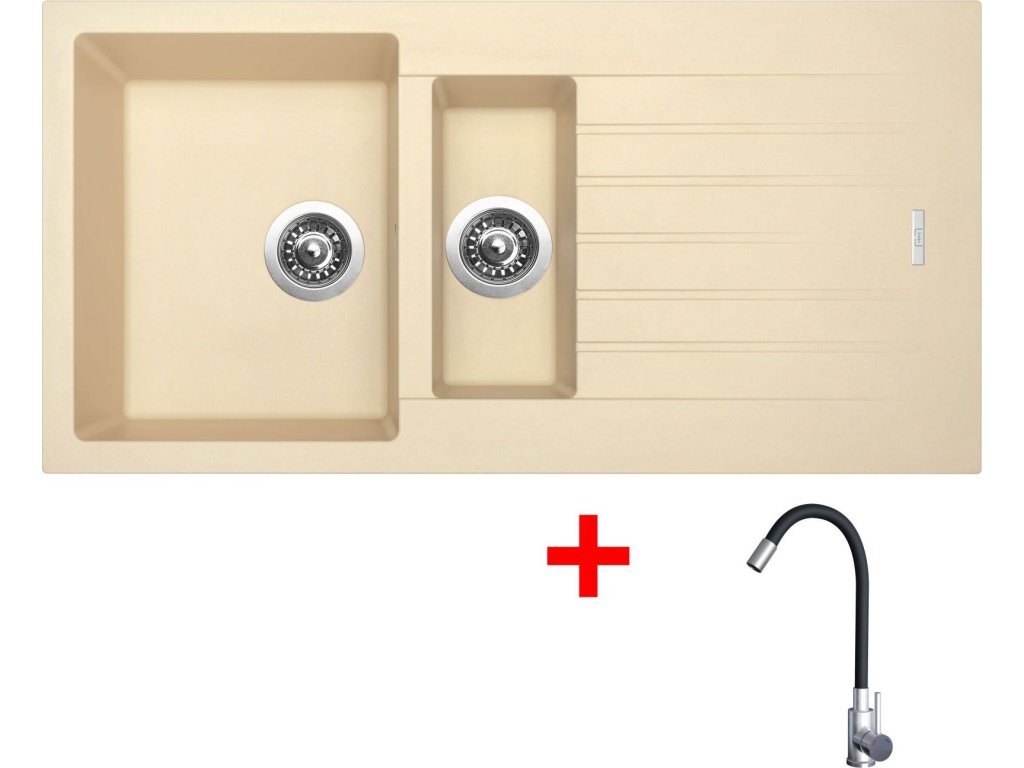 Granitový dřez Sinks PERFECTO 1000.1 Sahara + Elasta nerez/černá G22450