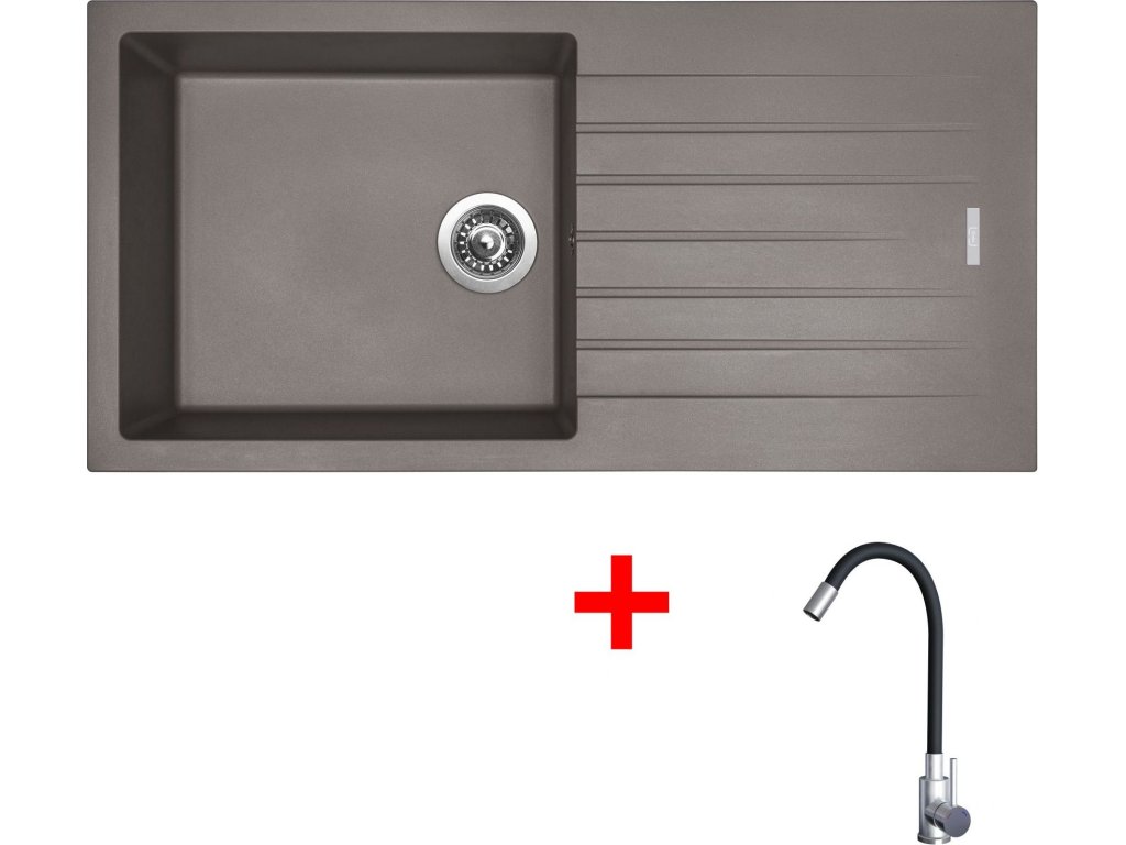 Granitový dřez Sinks PERFECTO 1000 Truffle + Elasta nerez/černá G22354