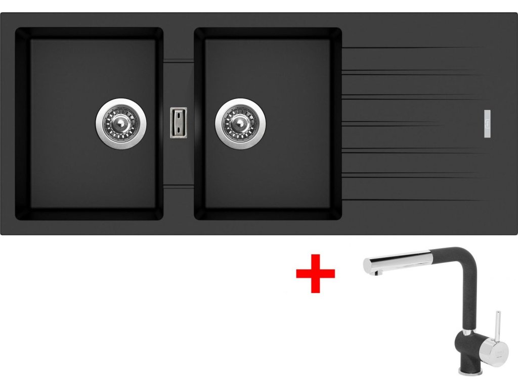 Granitový dřez Sinks PERFECTO 1160 DUO Metalblack + Mix 3 P GR G17274