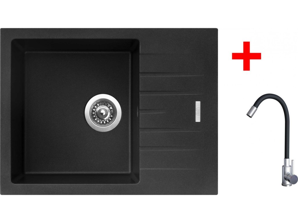 Granitový dřez Sinks PERFECTO 650 Metalblack + Elasta nerez/černá G21874