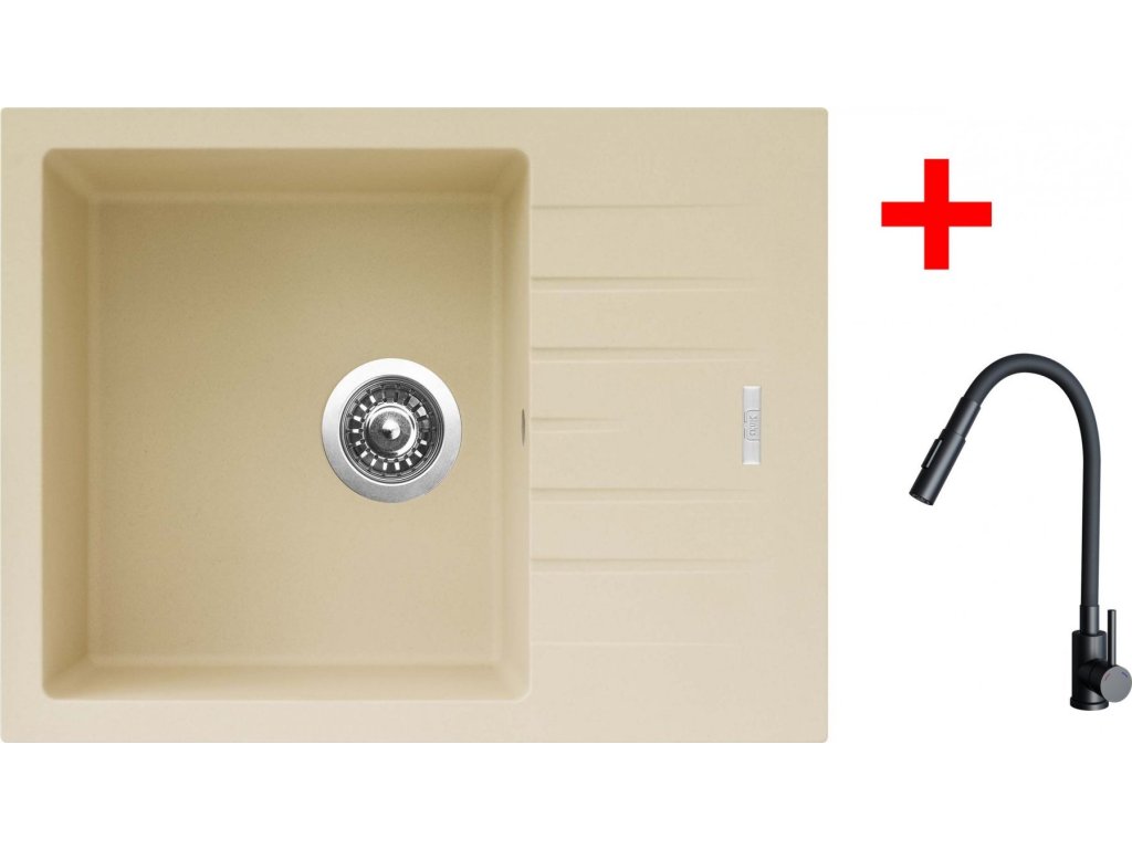 Granitový dřez Sinks PERFECTO 650 Sahara + ELASTA S černá matná G24850