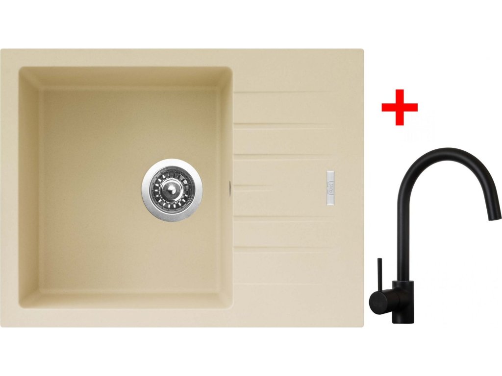 Granitový dřez Sinks PERFECTO 650 Sahara + Vitalia černá matná G10750