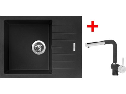 Granitový dřez Sinks PERFECTO 650 Titanium + Elasta nerez/černá G21872