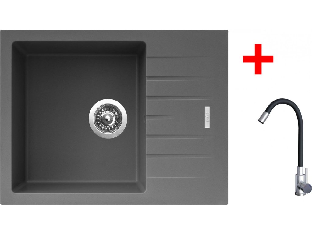 Granitový dřez Sinks PERFECTO 650 Titanium + Elasta nerez/černá G21872