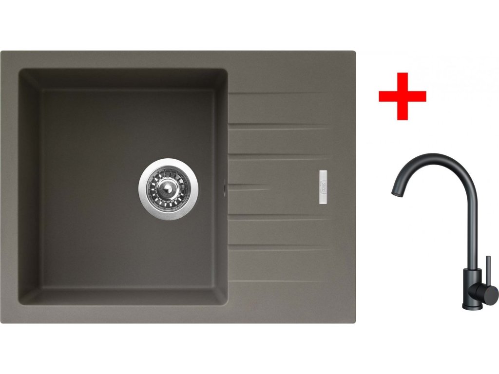 Granitový dřez Sinks PERFECTO 650 Truffle + ARCO černá matná G24454