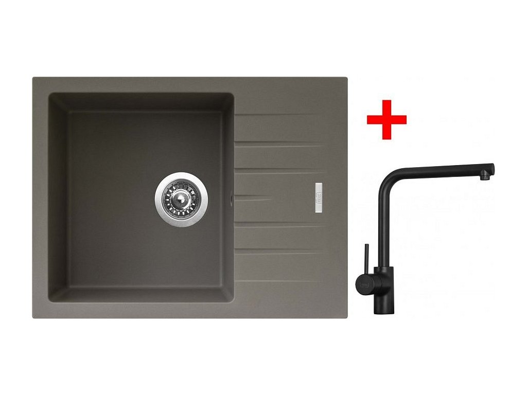 Granitový dřez Sinks PERFECTO 650 Truffle + Elka černá matná G11154